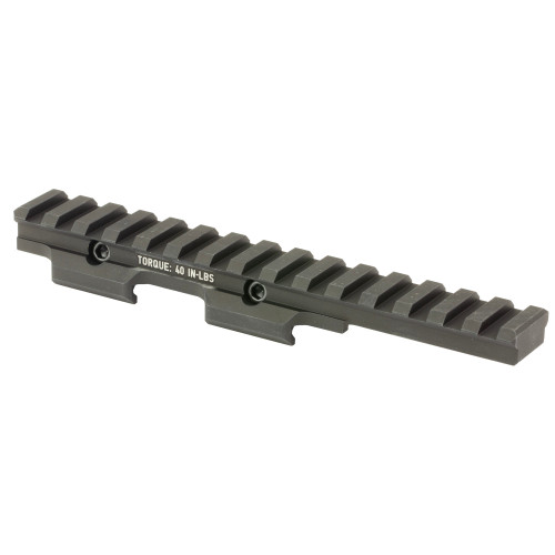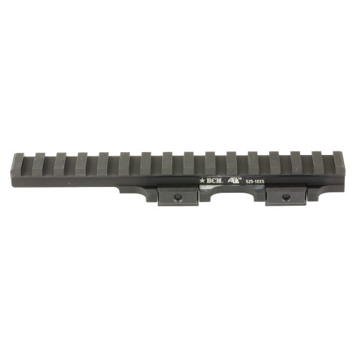 A/T Optic Riser 525-10x5 is approximately 6-1/8" long and offers a cantilever section for applications where the end user desires to run an attachment or optic over the handguard while avoiding bridging the optic from the upper to the handguard. This riser has 10 recoil slots on the main body, and 5 on the cantilever section for a total of 15 slots (16 lugs). Optimized for close combat ranges, the BCM A/T Riser creates a platform that raises the centerline of attached optics and magnifiers by 0.525 inches which raises typical lower 1/3 optics to approximately 2.16 inches height and absolute co-witness optics to approximately 1.93 inches height. This additional height enhances the trained end users situational awareness, and further, makes it possible for them to take better aimed shots if they are using the optic in conjunction with night vision or other PPE systems.