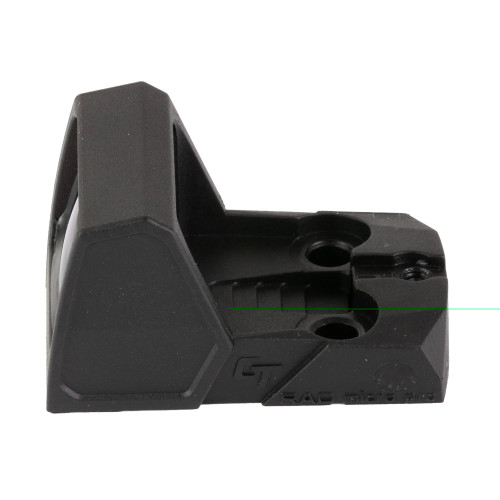 The CT RAD Micro (Rapid Aiming Dot) Electronic Sight is an ultra-compact Open Reflex Sight for compact and subcompact pistols. The CT RAD Micro has a recessed and fully multi-coated lens with a large quick acquisition window. The CT RAD Micro comes with the CT RADIANT Ambient Light Sensor that automatically adjusts the aiming dots brightness to the surrounding lighting condition. The Micro is easily installed on an optics cut slide using the CT micro footprint that is also compatible with the Shield RMS and JPoint footprints. The Micro has a rear sight notch cut into the back to line up with your front iron sight. Carbon infused polymer is 30% lighter than aluminum and 30% stronger than standard polymer. The entire CT RAD family has an Innovative top strap design that deflects force if the sight is dropped. Their engineers developed a better way to reduce stress on the lens of reflex sights. By combining out-of-the-box thinking with next-level physics, they designed a system that both re-enforces your optic and reduces stress if it happens to get dropped.