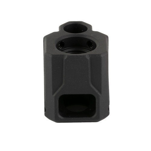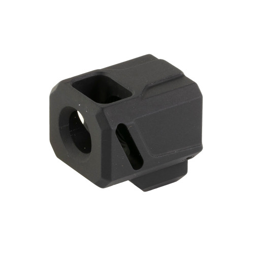 Faxon Firearms compensators are designed for Glock Gen 3 and Faxon Firearms FX-19 pistols. Fitment with other pistols or generations cannot be guaranteed. Constructed of 6061 Aluminum with a black anodized finish, Faxon Pistol Compensators feature a uniquely angled front port single chamber design, enabling the compensator to improve consistency while reducing muzzle climb and recoil. The angled ports allow gas to deflect upwards as opposed to only deflecting sideways, reducing up and down muzzle movement and improving reliability. Barrel protrusion is designed to fit flush with the slide and has been optimized for Faxon branded barrels. For all other barrels, the barrel should protrude .600" or less for a flush fit. Each compensator comes complete with thread locker, two 6-32 set screws, and a 1/16 Allen wrench.