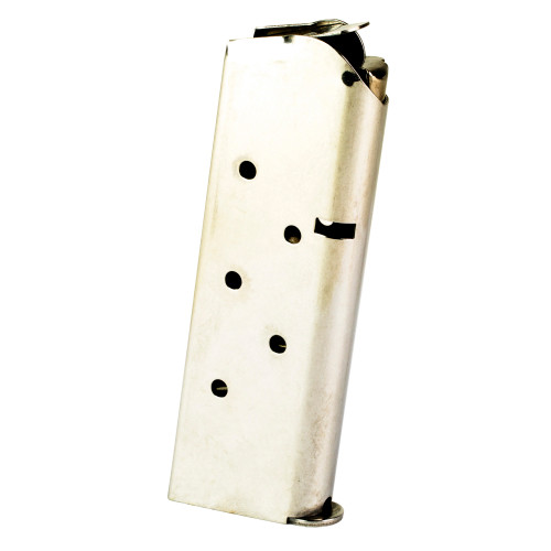 Stainless 7-round magazine for Compact and Ultra 1911 .45 ACP pistols. Pre-drilled for base pad installation.