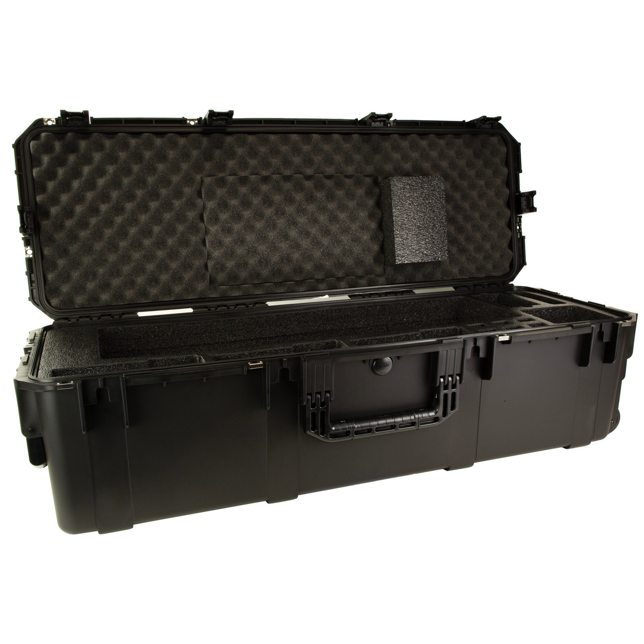 Featuring waterproof, military-grade construction, this all-in-one case fits three ARs up to 34" and three handguns, with plenty of room for magazines, ear protection, and other accessories. The insert is designed to be highly versatile, with removable plugs to change the gun height/length as needed.