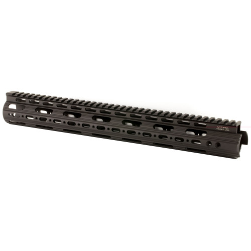 The UTG Pro model 4/15 rifle 15" super slim free float handguard has a proprietary attachment design and an extremely compact profile. It is super lightweight with a rail at the 12 oclock position that forms a continuous picatinny top section. It includes three user detachable 2-slot rail sections.